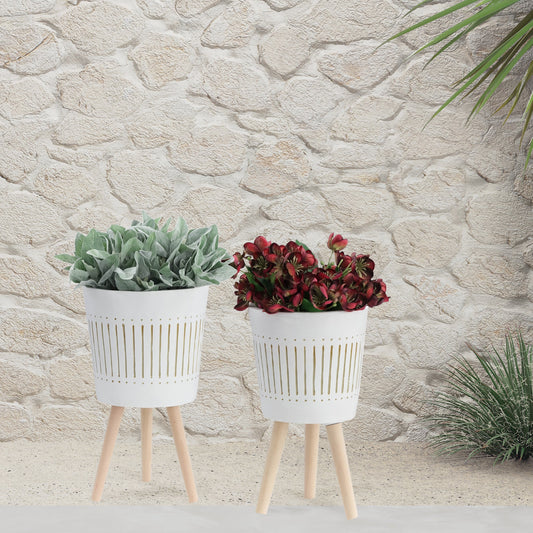 S/2 10/12" Planter W/ Wood Legs, White (kd)