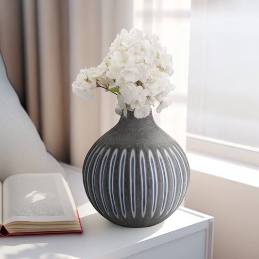 Glass, 12" Ridged Vase, Blue/gray