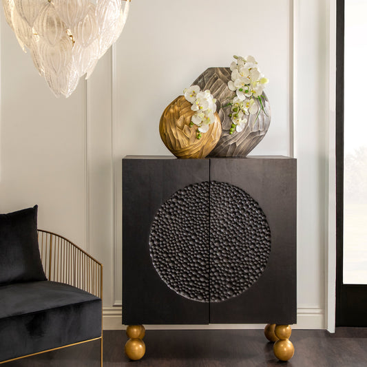 Glass, 26"h Vase W/ Metal Base, Champagne