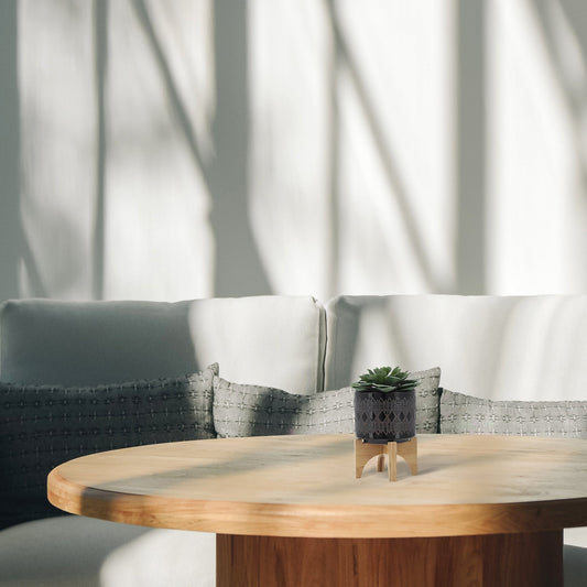 Ceramic 5" Planter On Wooden Stand, Gray