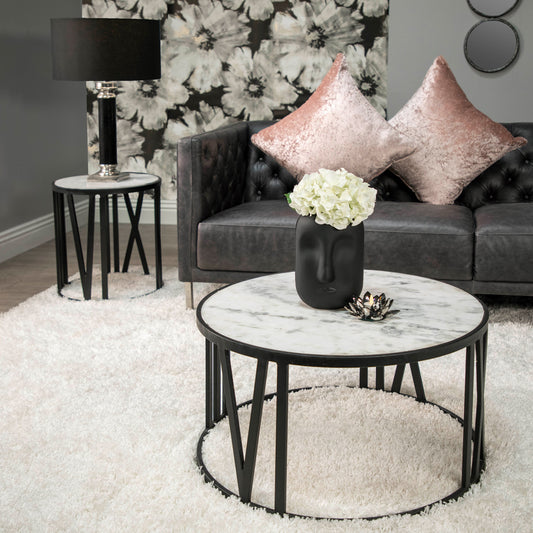 Marble, 5" Geometric Orb, White
