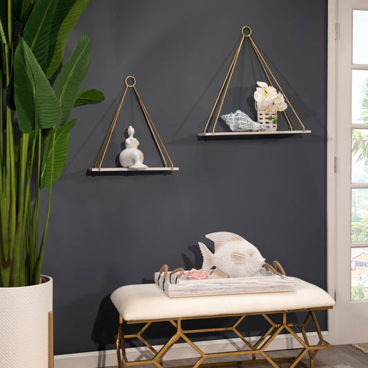 Wood / Metal 12" L Demilune Wall Shelf, Brown