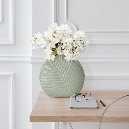 Cer, 11" Round Botanical Vase, Cucumber