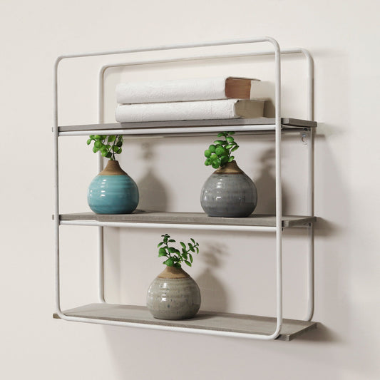 Metal/wood 3 Tier Wall Shelf, Gray/white