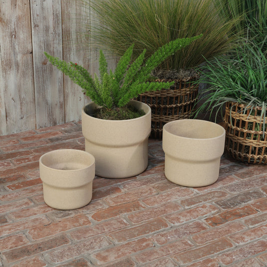 Cer, S/3 7/9/10"d Mushroom Planters, Tan