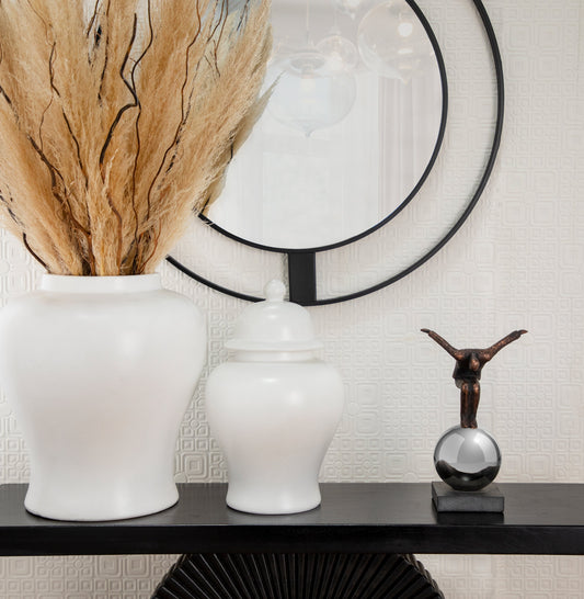 Glass, 17" Vase W/ Metal Base Stone Accent, Pearl