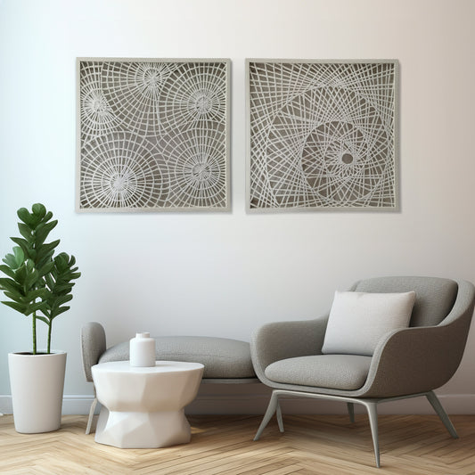 29x35 Paper Mache Wall Art Framed Glass, Gray