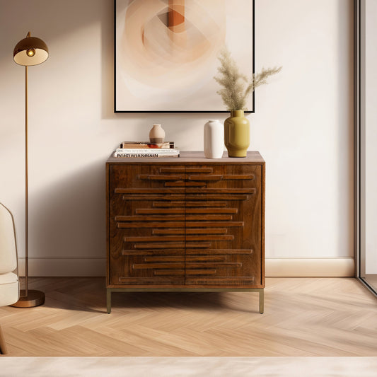 30" Midcentury Slat 2 Door Cabinet, Mango Brwn