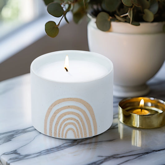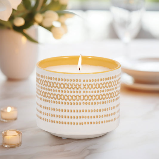 5" 19 Oz Spiced Pear Mosaic Candle, Champagne