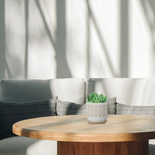 6" Circles Planter W/ Saucer, Beige