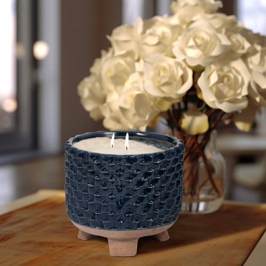 7" 27 Oz Ocean Mist Woven Candle, Navy