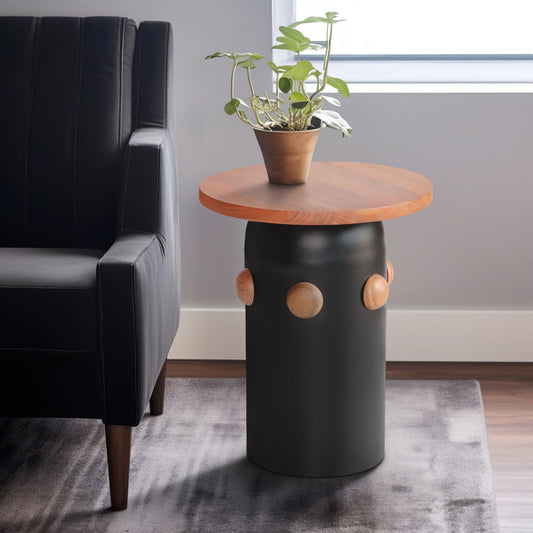 Wood, 20" Side Table W/ Knobs, Black/brown
