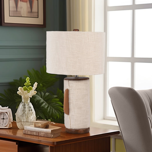 24" Ecomix Fabric Lamp With Wood, Ivory