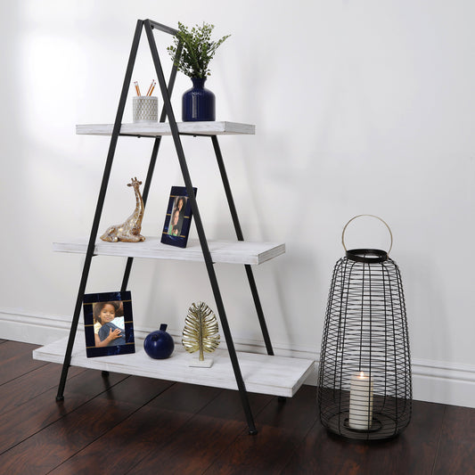 Metal/wood 54" Pyramid Shelf, White/black Kd