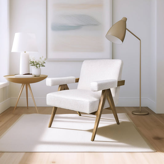 Curved Back Wishbonechair With Brown Legs - Ivory