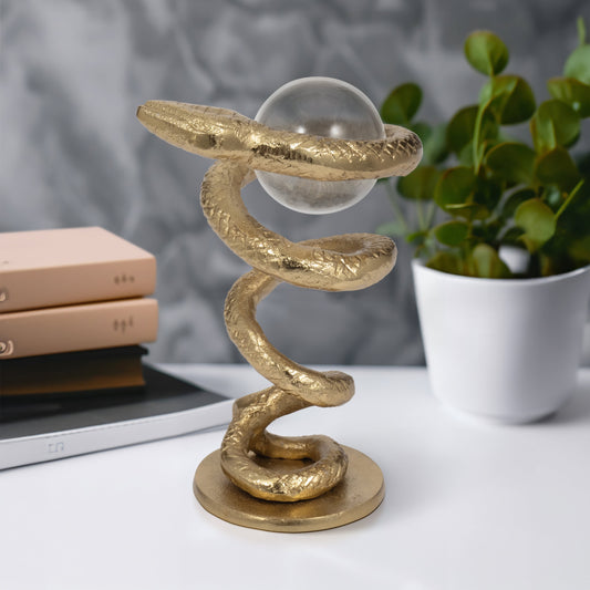 Metal, 7" Snake Coil W/ Acrylic Ball, Gold