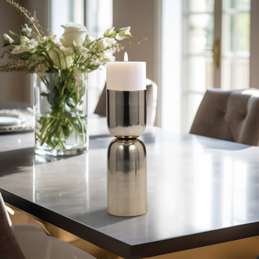 Metal, 10" Round Pillar Candleholder, Gold