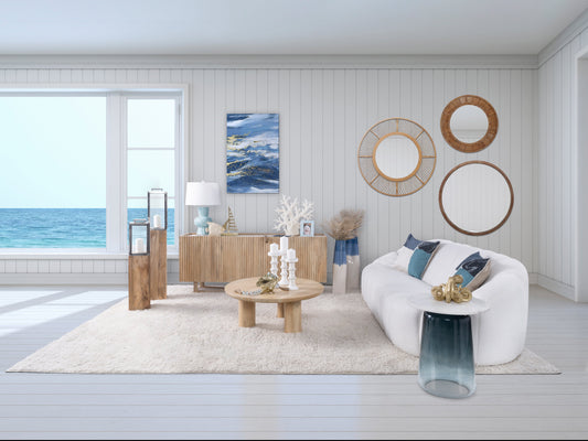 Clay, 12" Flat Ribbed Bottle Vase, Blue/white