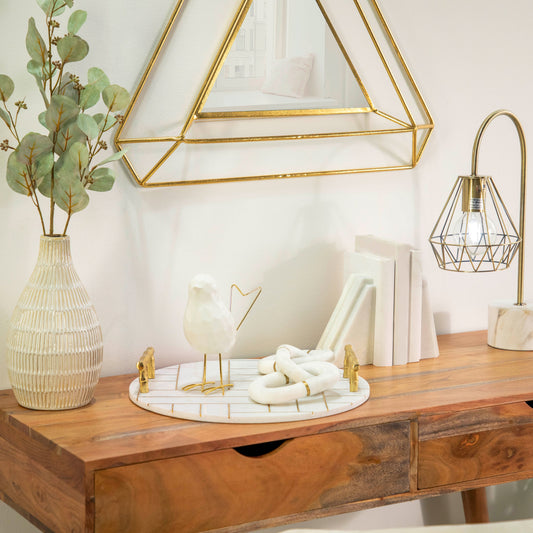 White Ceramic /glass 6" Pillar Holder, Diamond