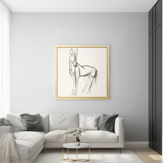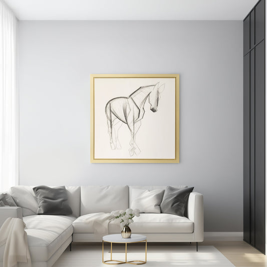 47x47, Hand Painted Elegant Horse Sketch, Blk/wht