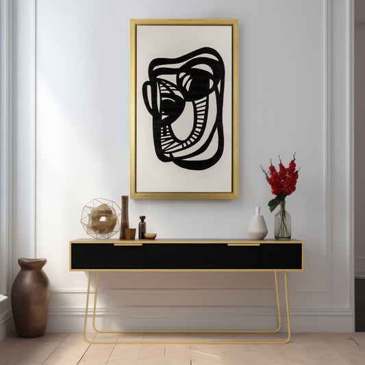 35x59, Hand Painted Gold Frame Geometric Face, Blk