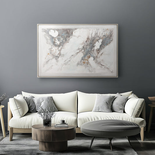 35x59, Hand Painted Textured Acrylic, Wht/gold