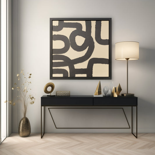 47x47, Hand Painted Accidental Poem , Blk/ivory