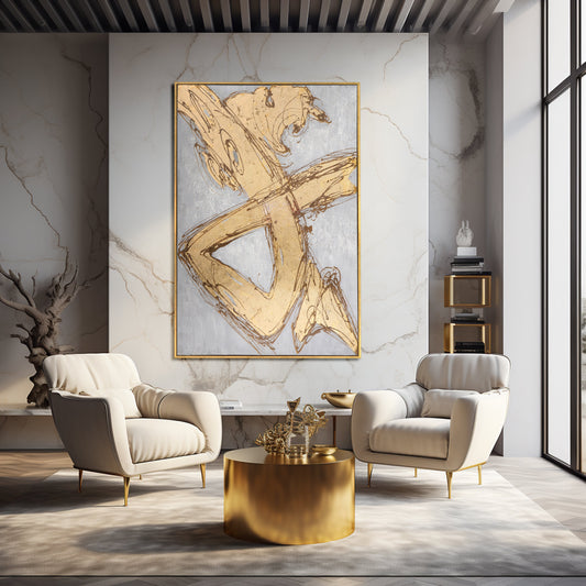 35x47 Handpainted Abstract Canvas W/ Gold Foi