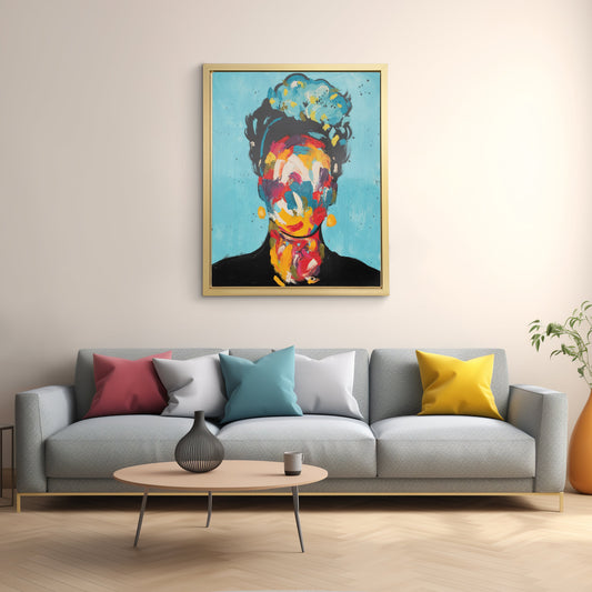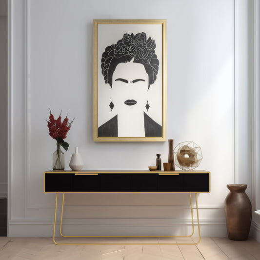 35x59, Hand Painted Frida Portrait, Blk/wht