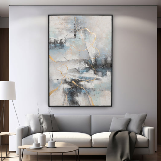 73x49 Framed Hand Painted Abstract Canvas, Gray/bl