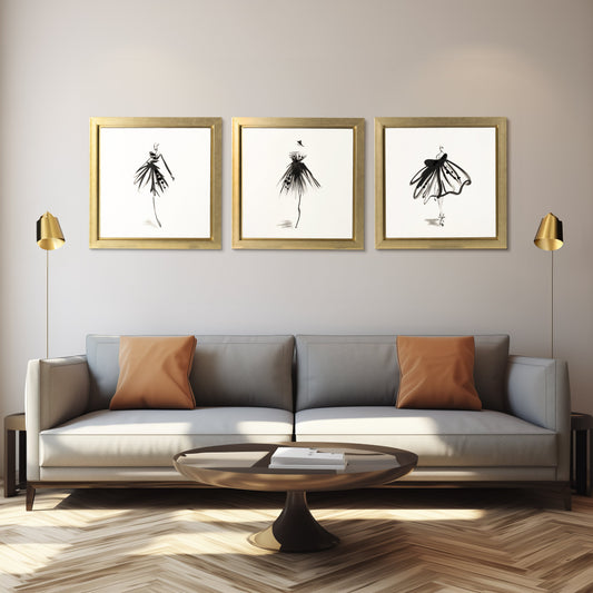 83x28, S/3 Hand Painted Ballerina Pose, Gold