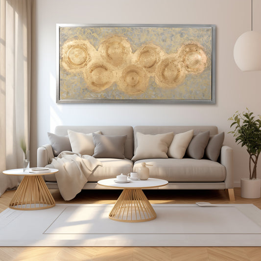 71x47, Hand Painted Clustered Circles, Wht/gold