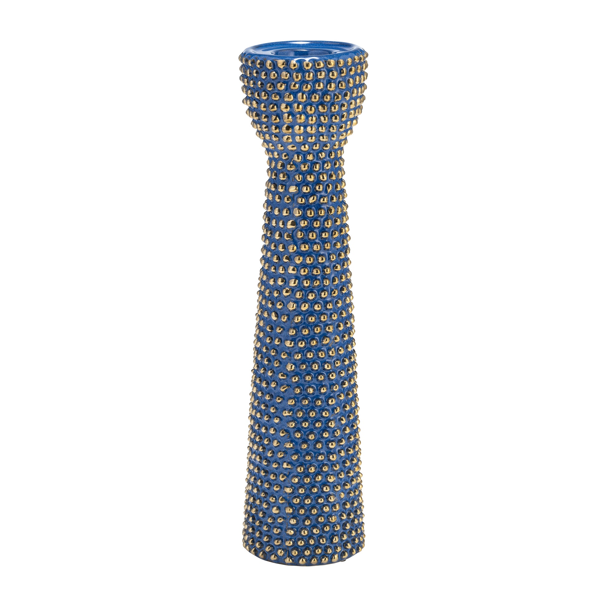 Spiked Navy/Gold Ceramic Candle Holder 16"
