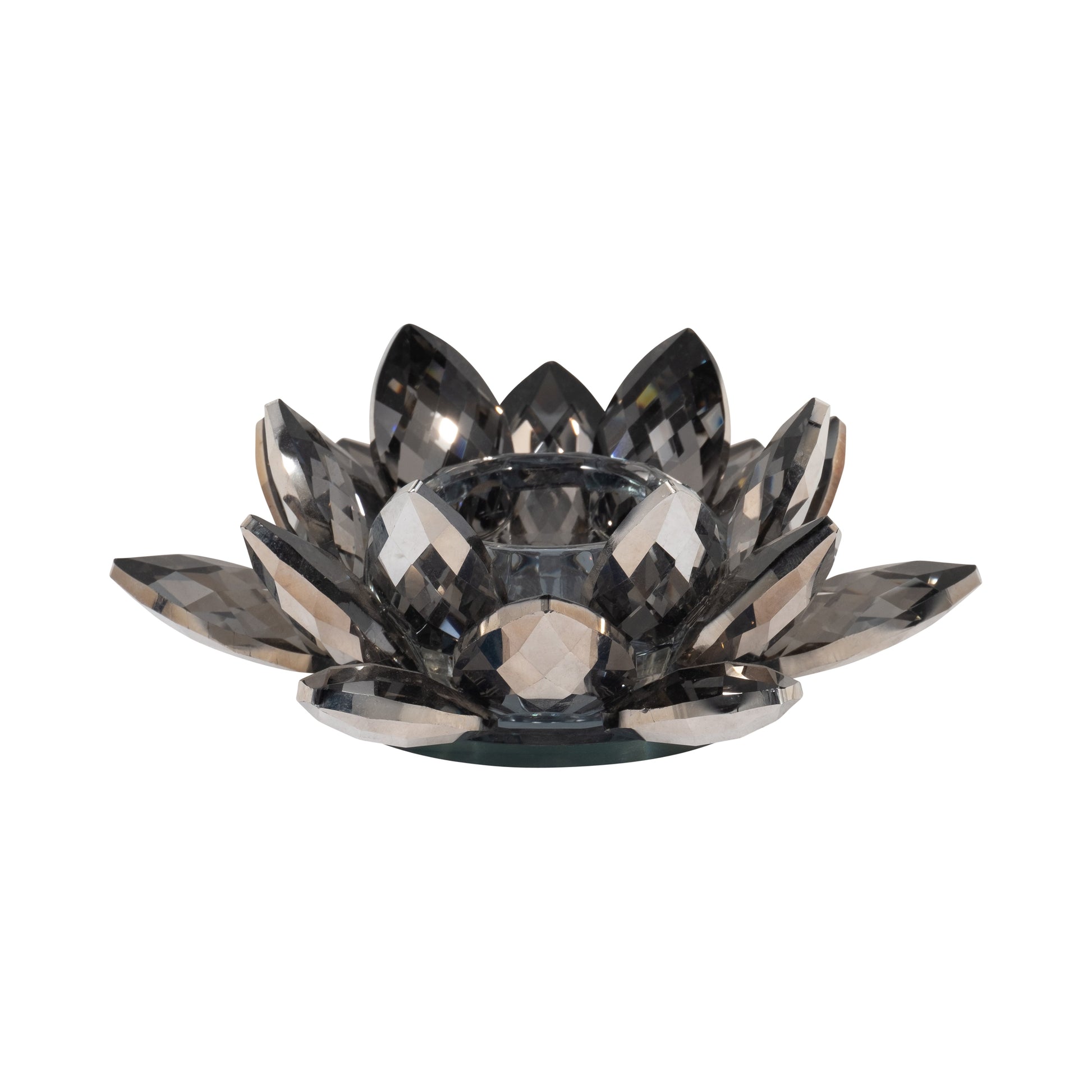 Black Crystal Lotus Votive Holder 6"