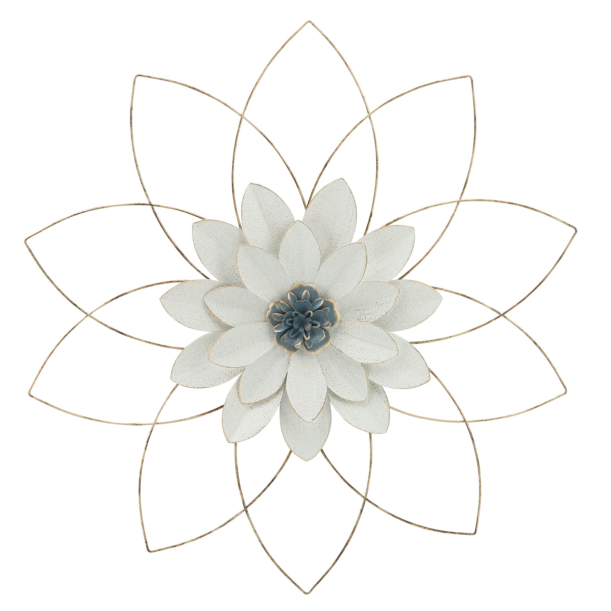 Metal 25" Wall Flower, White/Blue, Wb