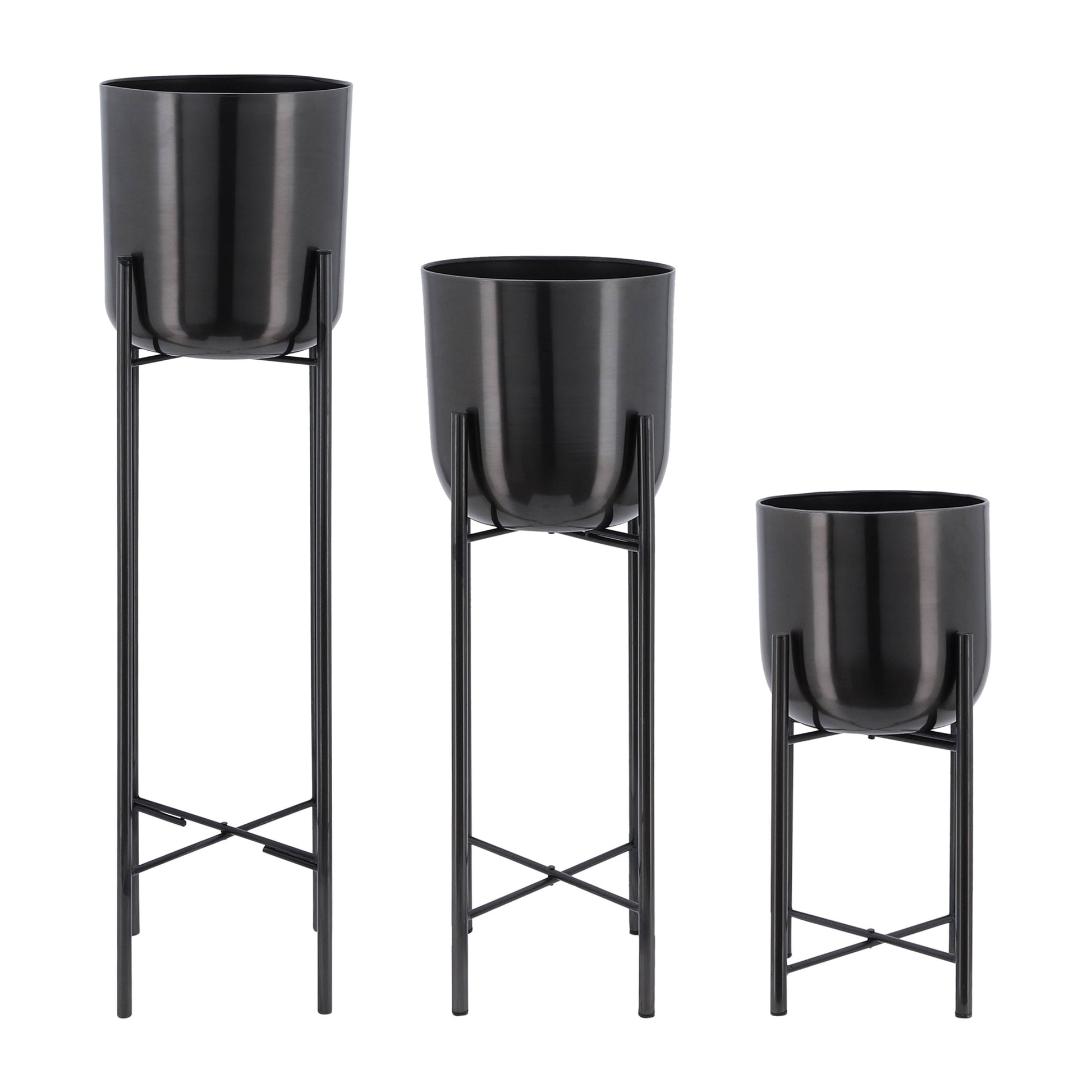 S/3 Metal Planters On Stand 40/30/20"H, Gunmetal