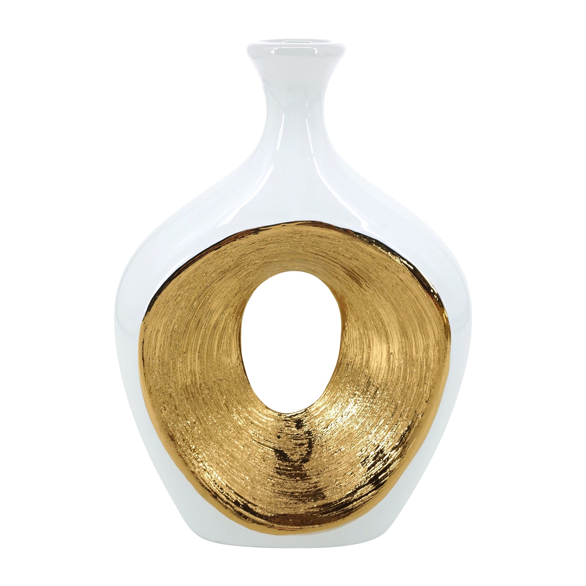 Cer, 13"H 2-Tone Scratched Oval Vase, Wht/Gld