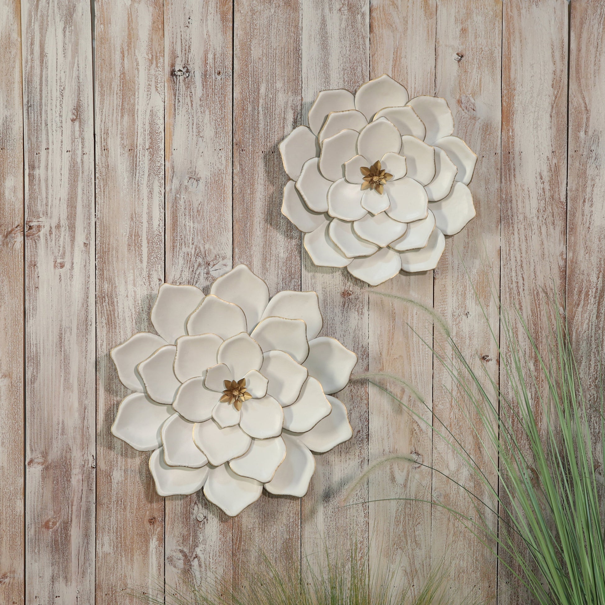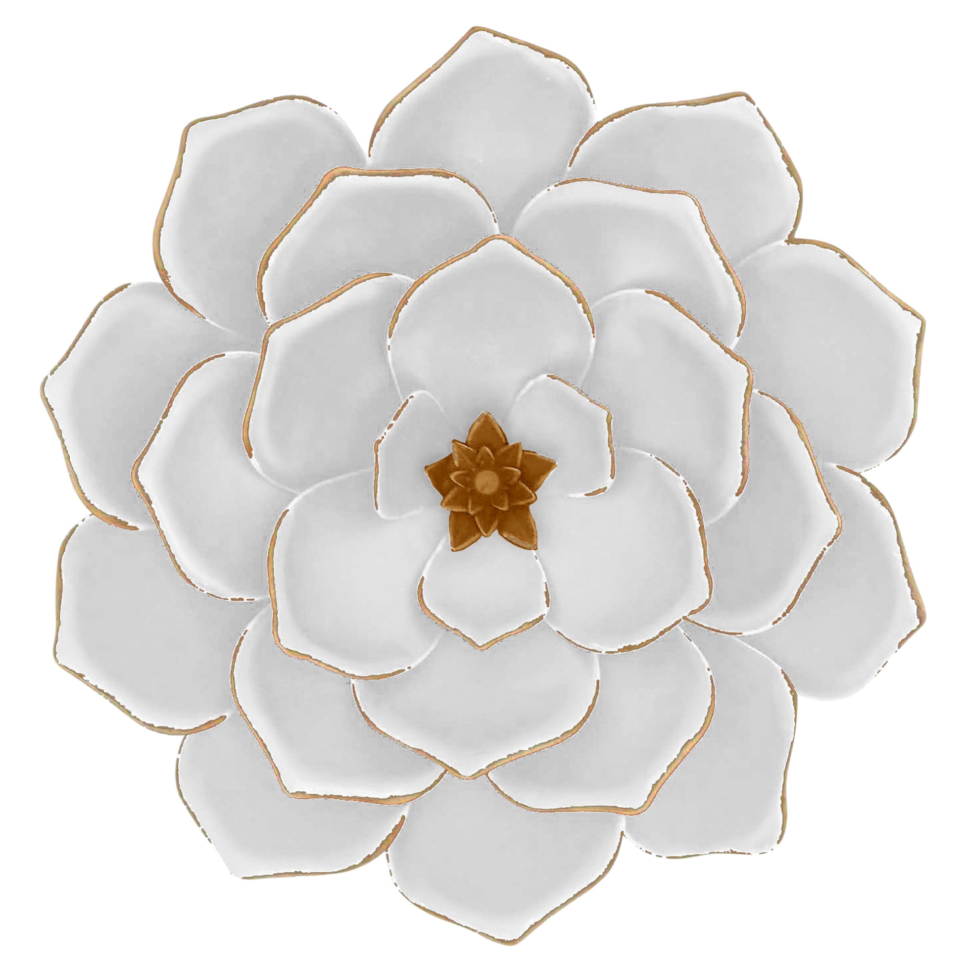 Metal 17" Multi-Layer Flower Wall Deco, White/Gol