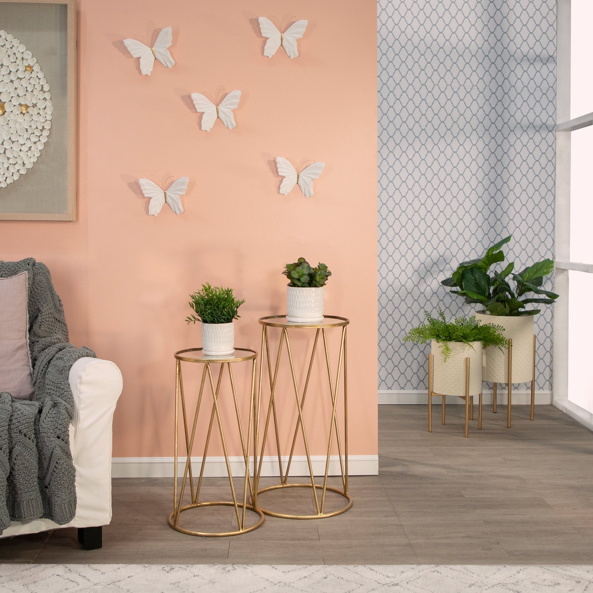 S/2 5/6" Dimpled Planters W/ Saucer, White