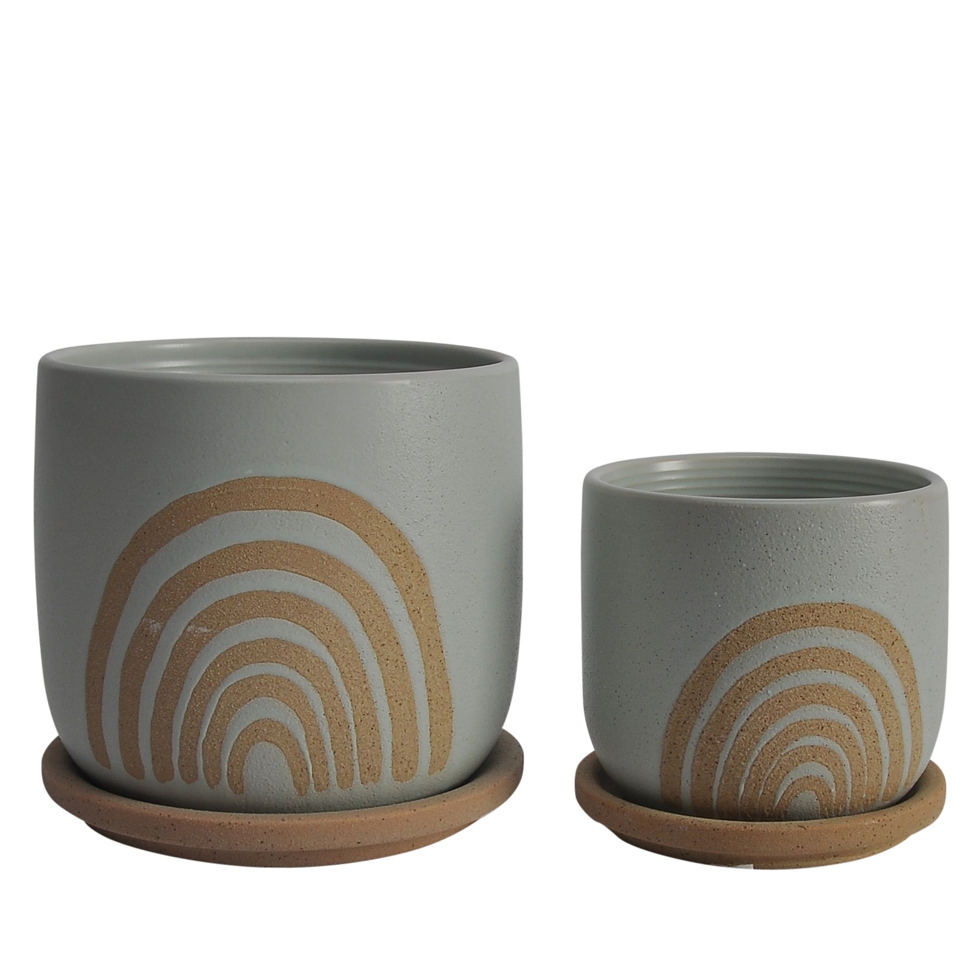 S/2 5/6" Arch Planter W/ Saucer, Mint