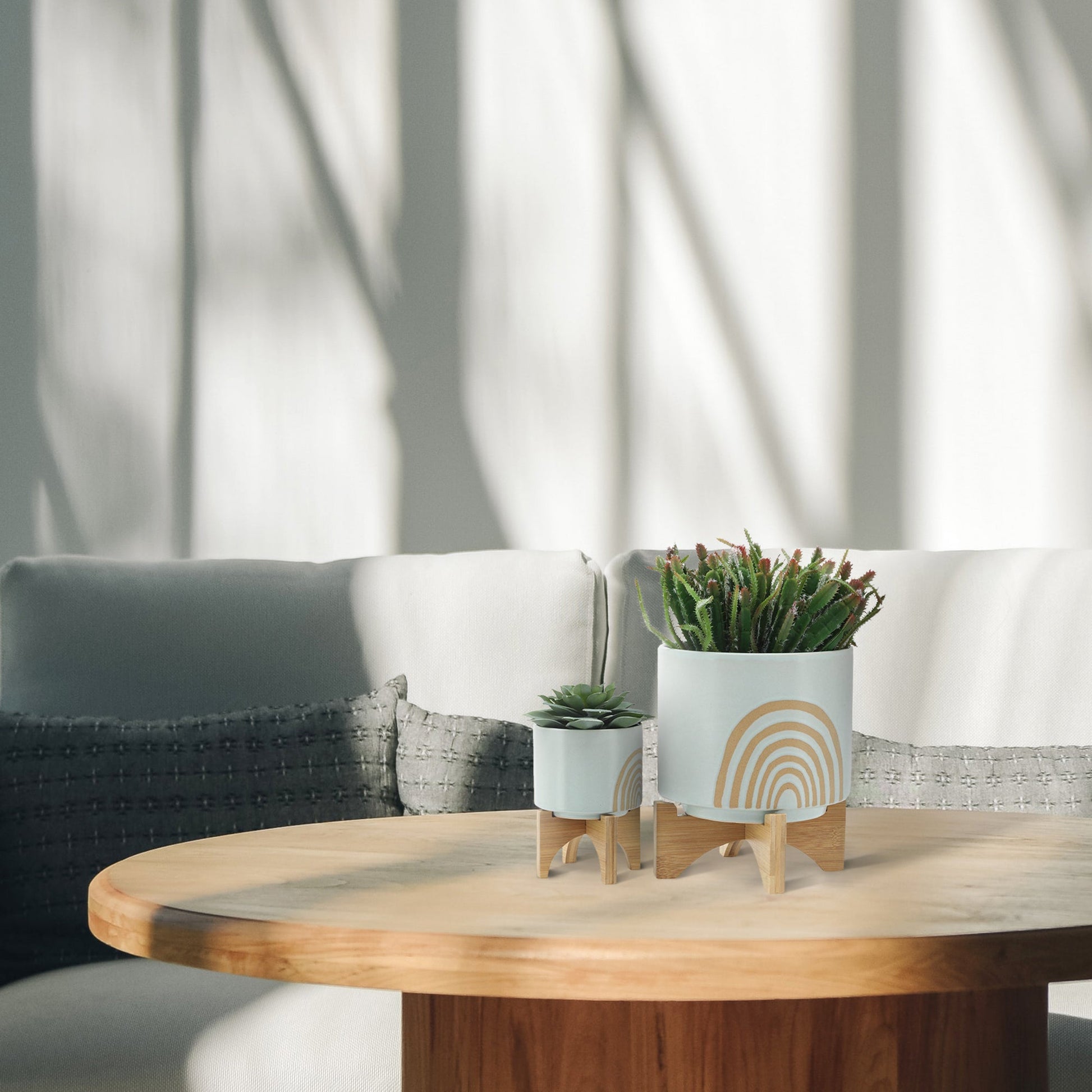 S/2 5/8" Arch Planter W/ Stand, Mint
