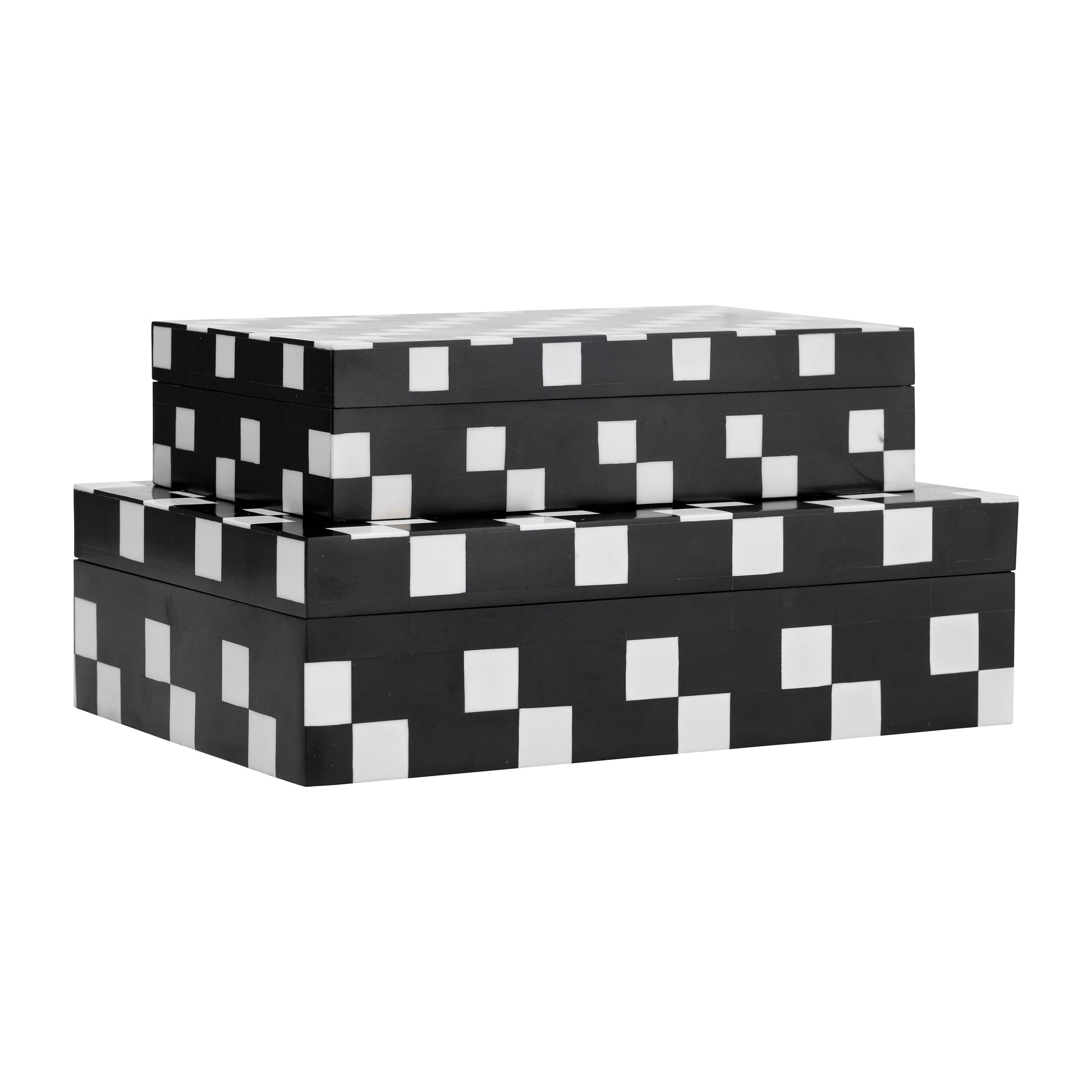 Resin, S/2 10/12" Diagonal Square Boxes, Wt/Blk