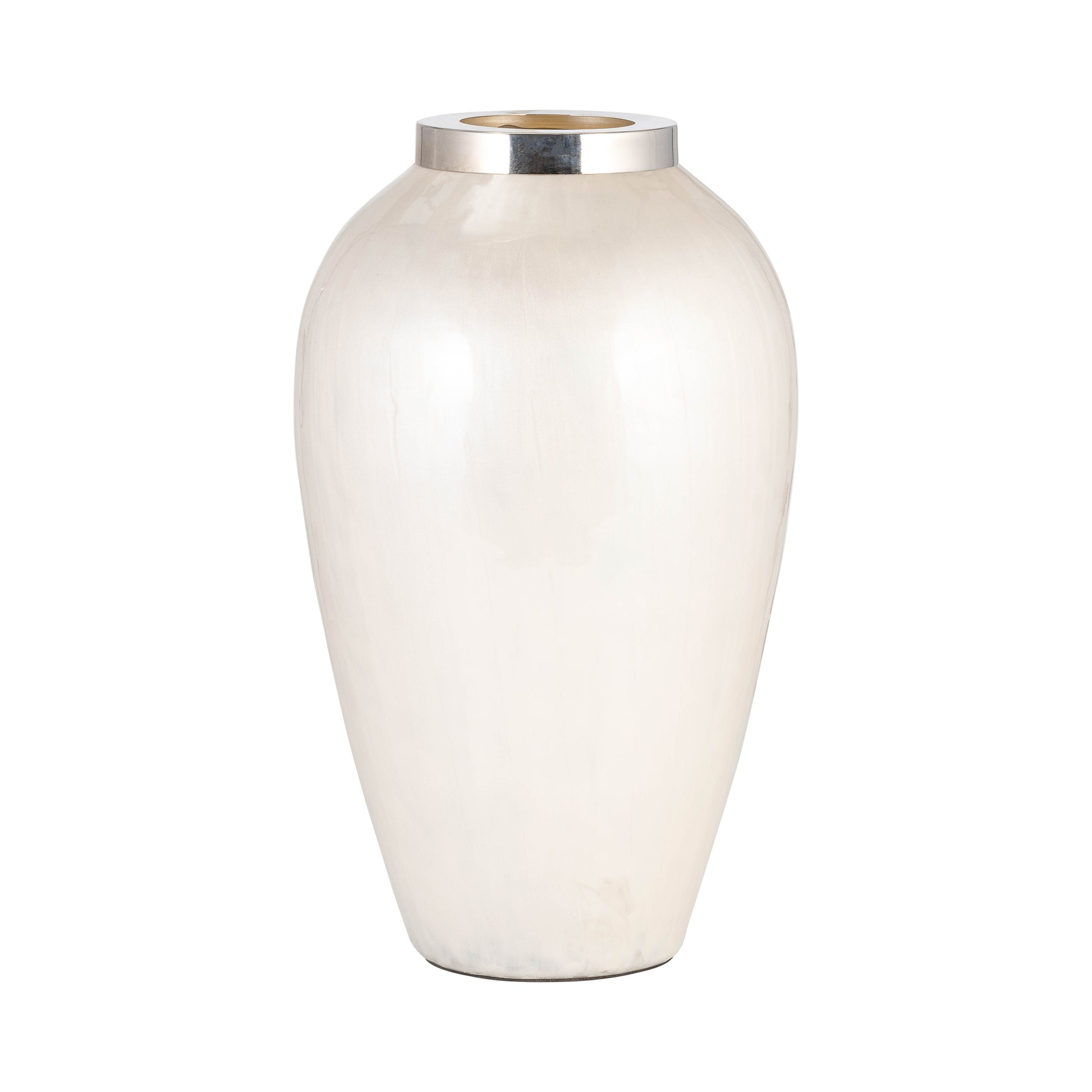 Glass, 17"H Vase W/ Metal Ring, Pearl