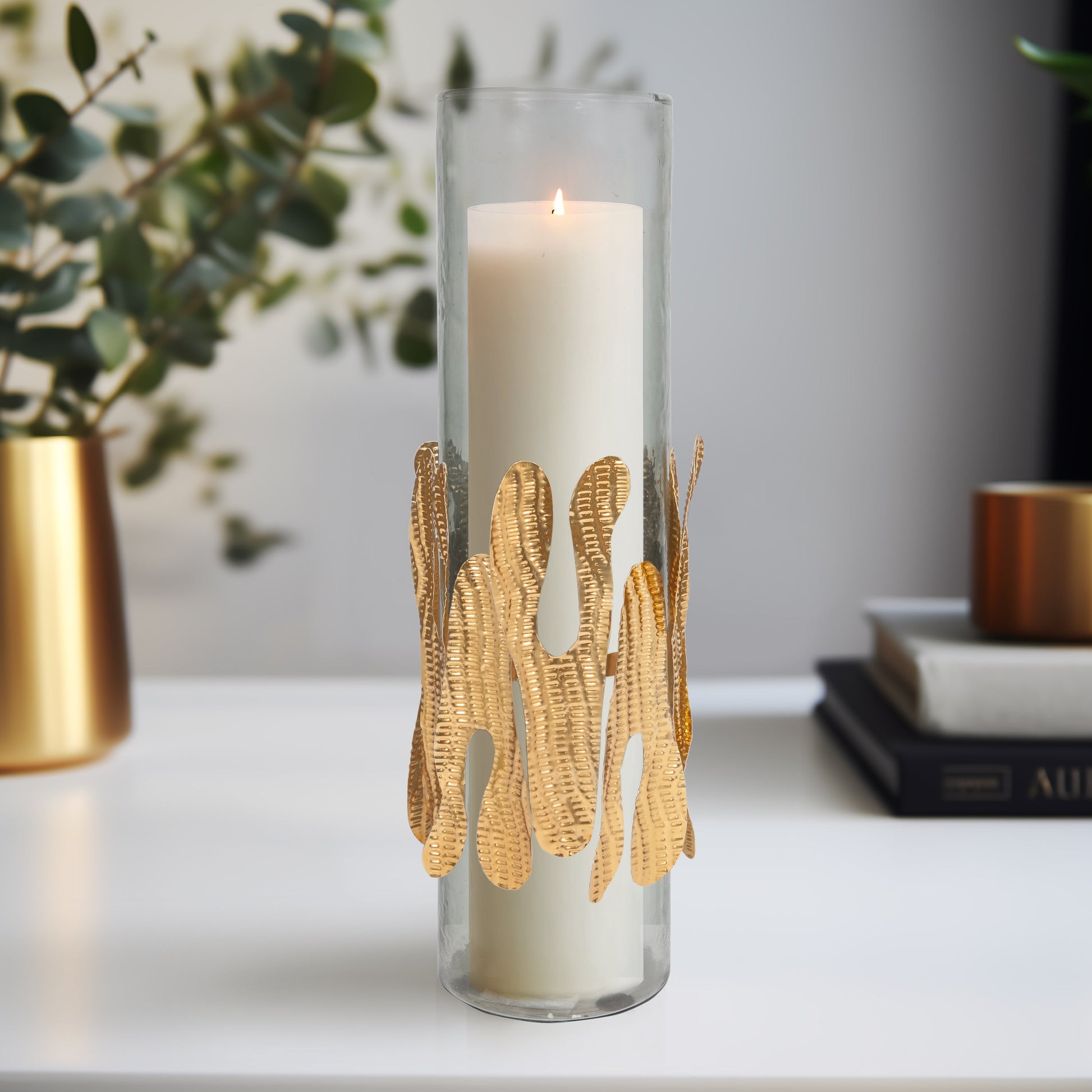Glass, 20"H Candle Holder W/ Metal Detail, Gray/Ch