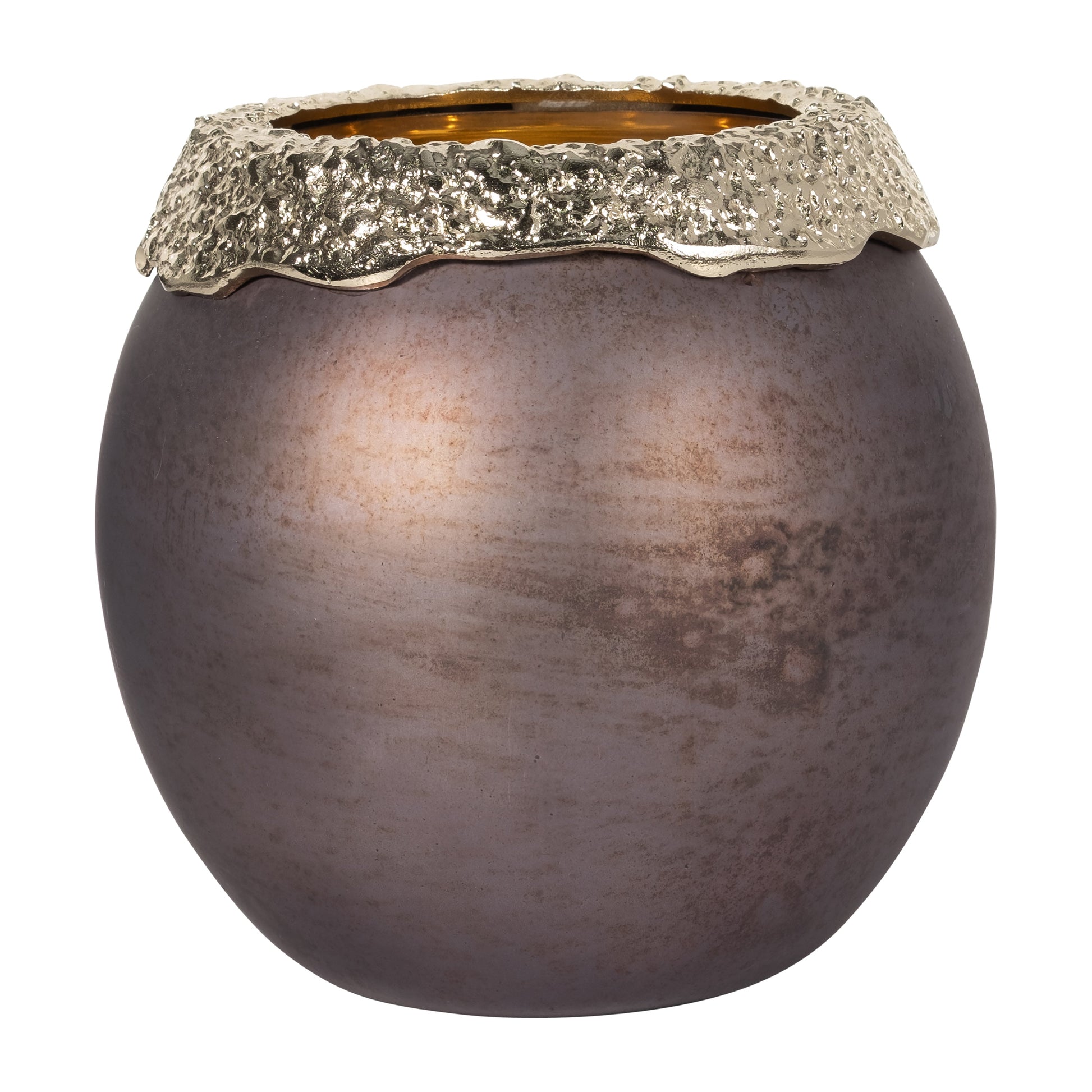 Glass,10",Oval Hurricane,Charred Coal/Gold