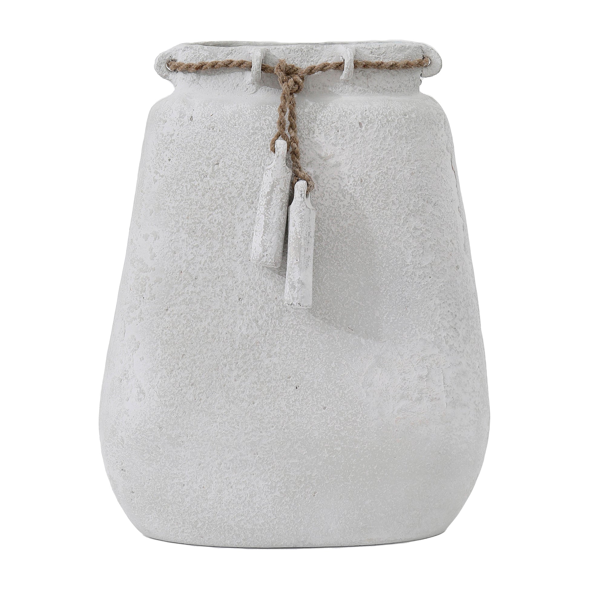 Ecomix, 16"H Vase W/ Jute Detail, White