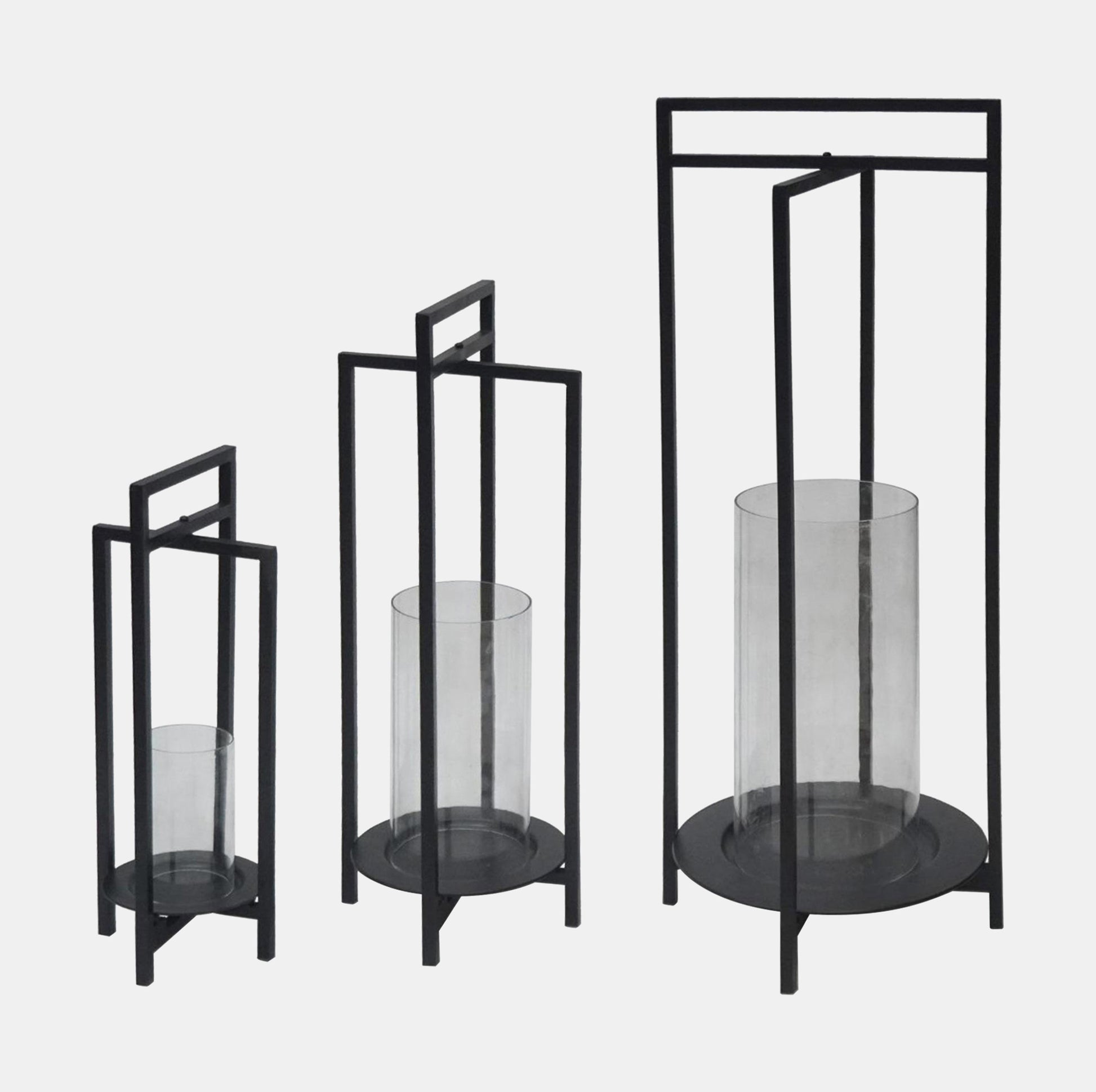 Metal, S/3 19/24/32"H Round Open Lanterns, Black