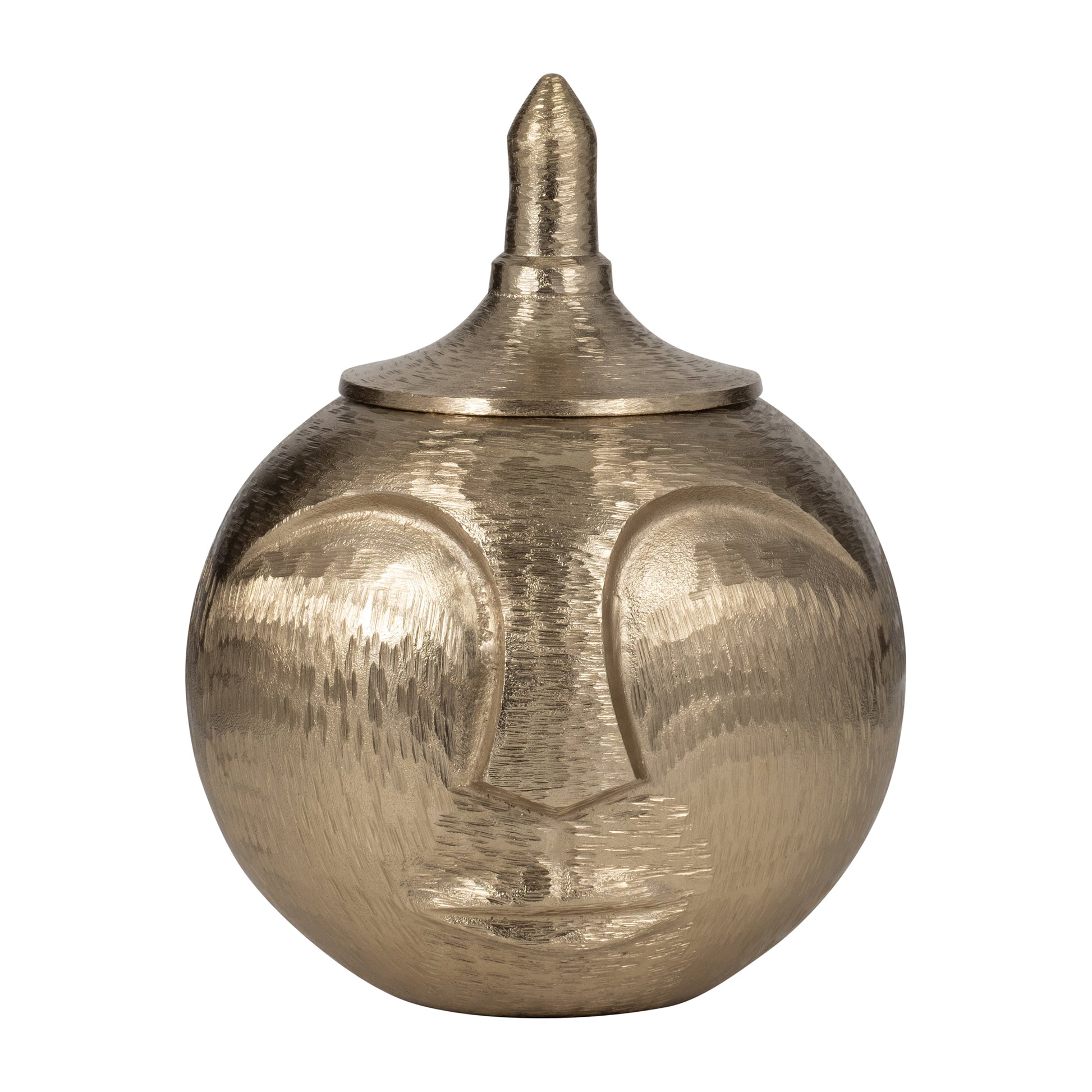 Metal, 13" Face Jar With Lid, Champagne