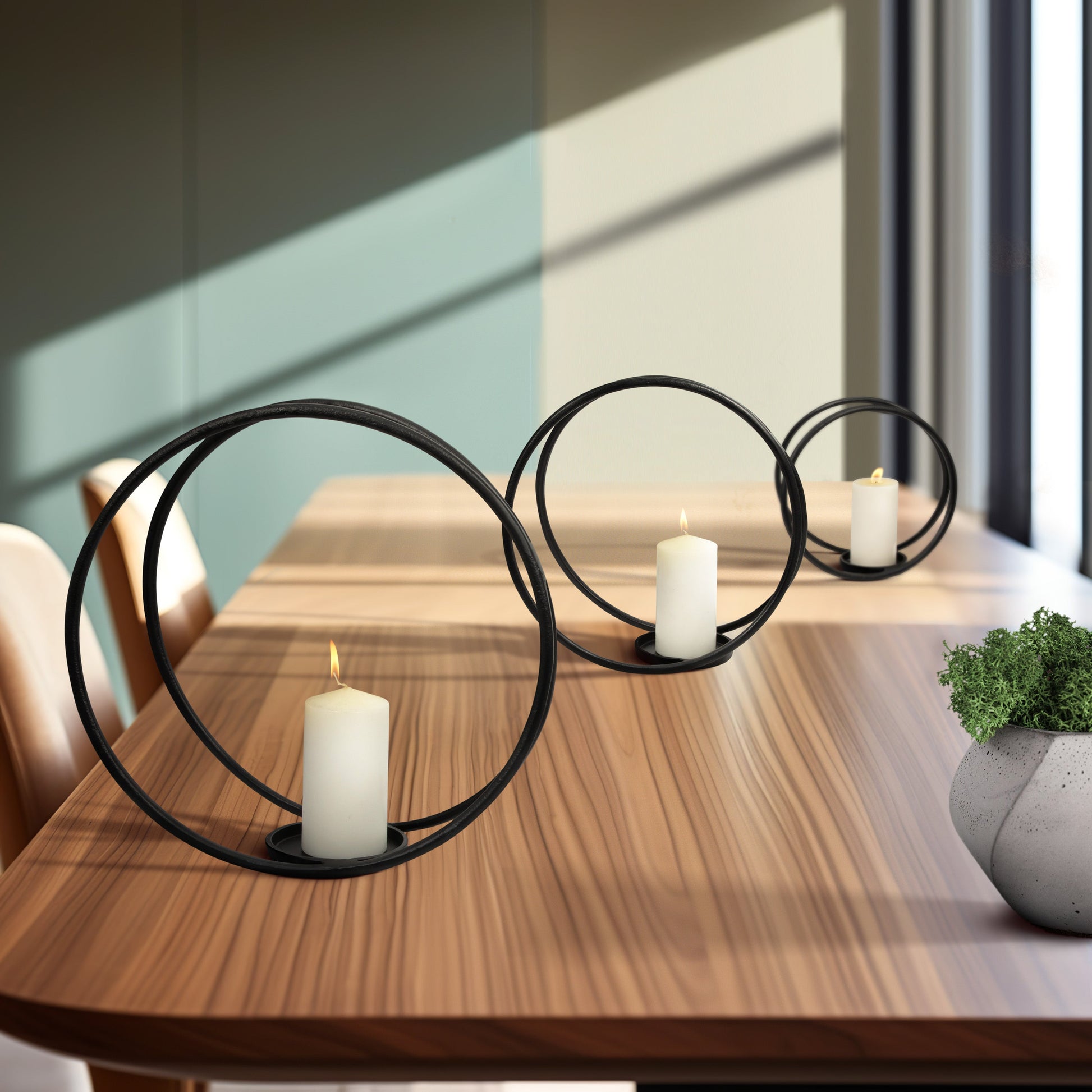 Metal,s/3 12/14/16"h,double Ring Candle Holder,bla
