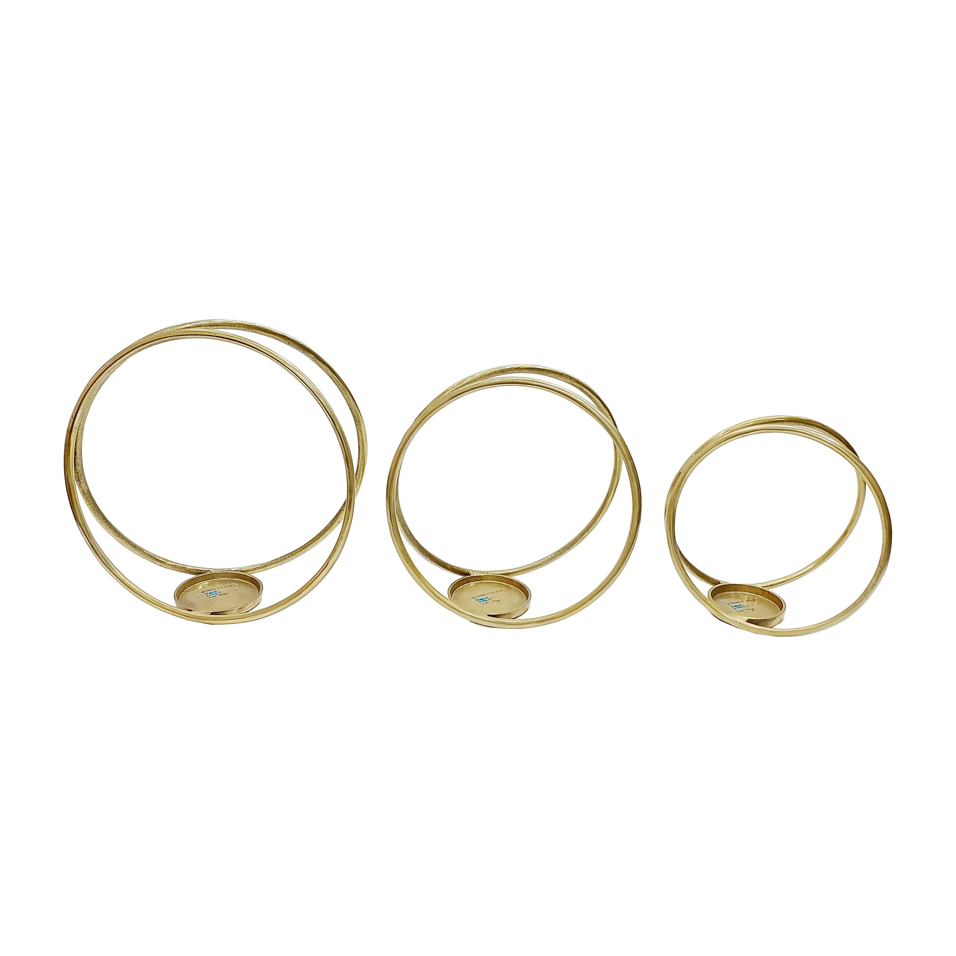 Metal,s/3 12/14/16"h,double Ring Candle Holder,gol